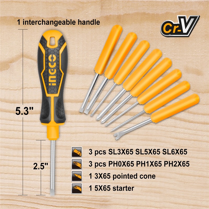 INGCO 9 PCS INTERCHANGEABLE SCREWDRIVER SET AKISD0901