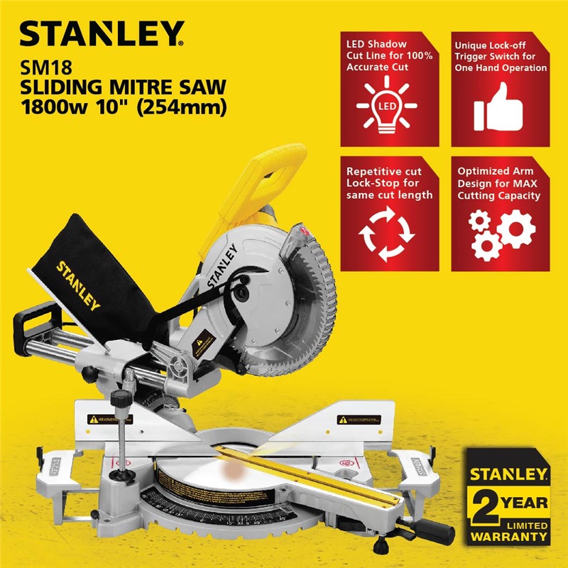 STANLEY SLIDE COMPOUND SAW WITH BLADE 10" 254MM 1800W 4800RPM SM18-B1