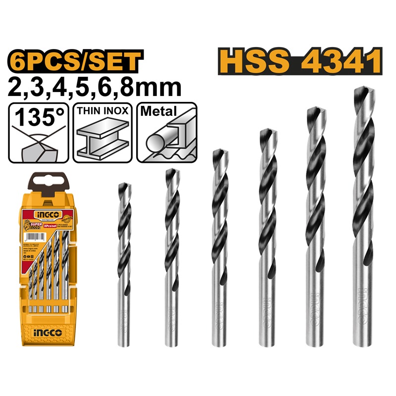 INGCO 6PCS HSS DRILL BIT SET SIZE 2,3,4,5,6,8MM AKD1055