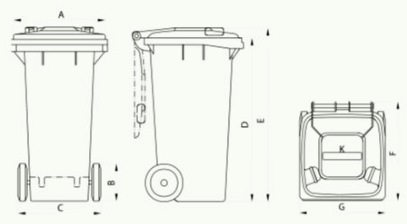 Polyethylene Bin c/w 2 Wheels, Lid Capacity: 60 litres