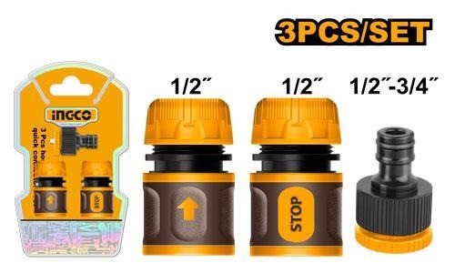 INGCO 3PCS WATER HOSE QUICK CONNECTOR SET HHCS03122