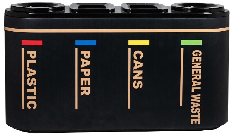 FIBREGLASS RECYCLE BIN C/W 4 COMPARTMENTS L1500XD420XH780MM BRIVO 4-IN-1 V1