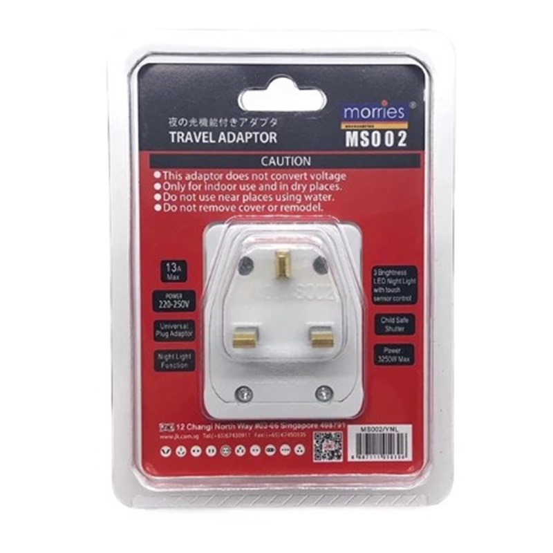 Home » Electrical & Lighting » Extension Cords & Travel Adaptors » MORRIES UNIVERSAL TRAVEL ADAPTOR WITH NIGHT LIGHT FUNCTION MS002
