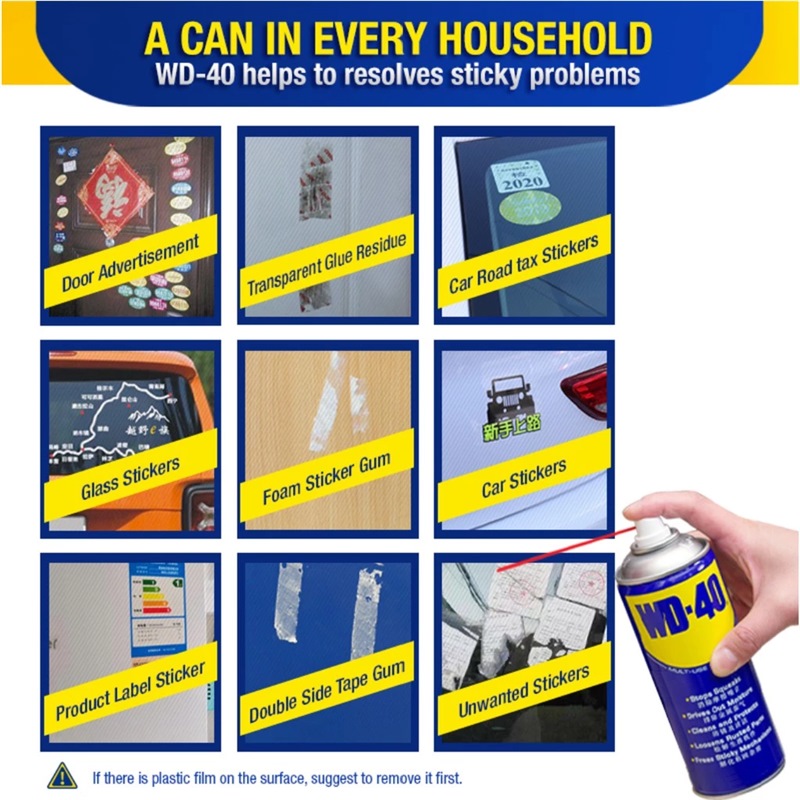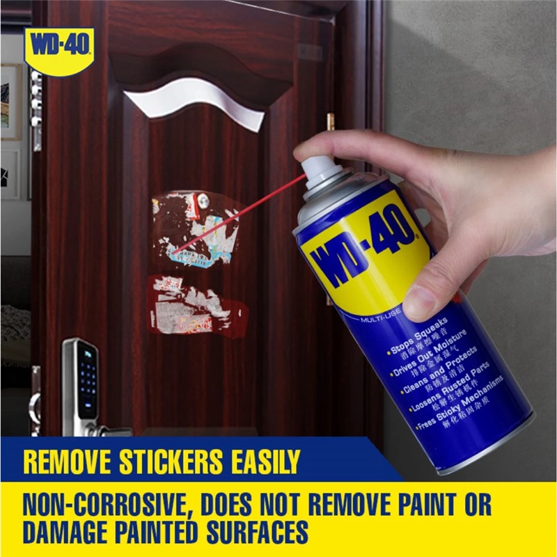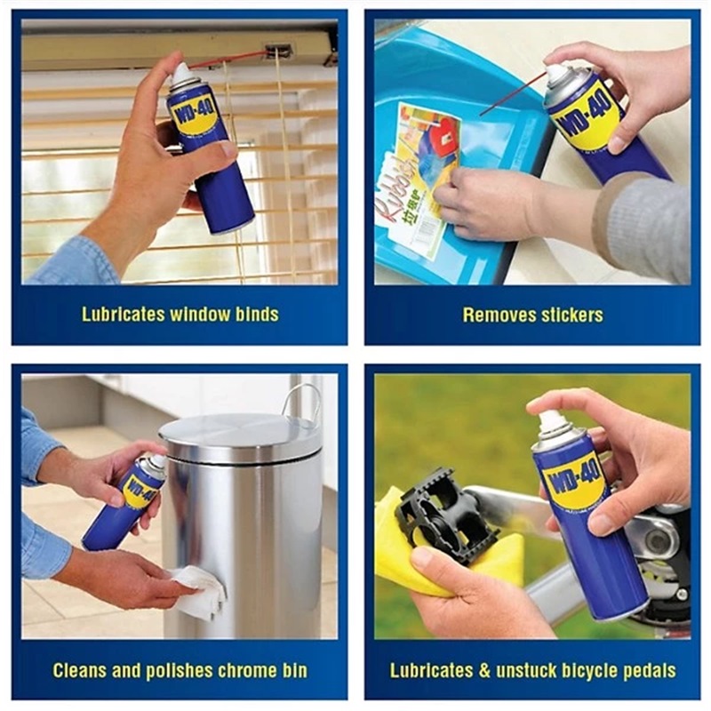 WD-40® Multi-Use Product protects metal from rust and corrosion, penetrates stuck parts, displaces moisture and lubricates almost anything. It even removes grease, grime and more from most surfaces