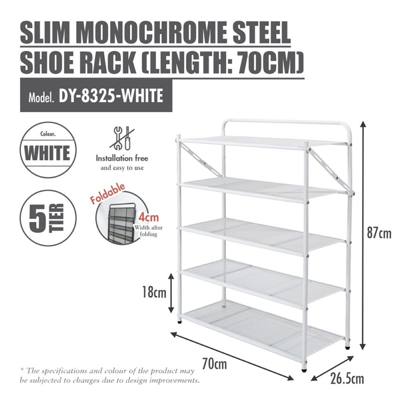 HOUZE SLIM MONOCHROME 5 TIER STEEL SHOE RACK (LENGTH: 70CM) DY-8325