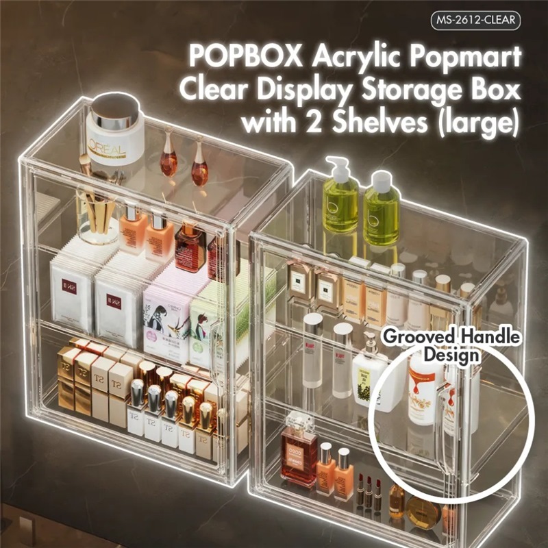 Home » Ladders, Trolleys & Storage » Shelves, Cabinets, Drawers & Racks » HOUZE POPBOX ACRYLIC POPMART DISPLAY WITH TWO SHELF (LARGE) MS-2612-CLEAR
