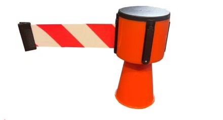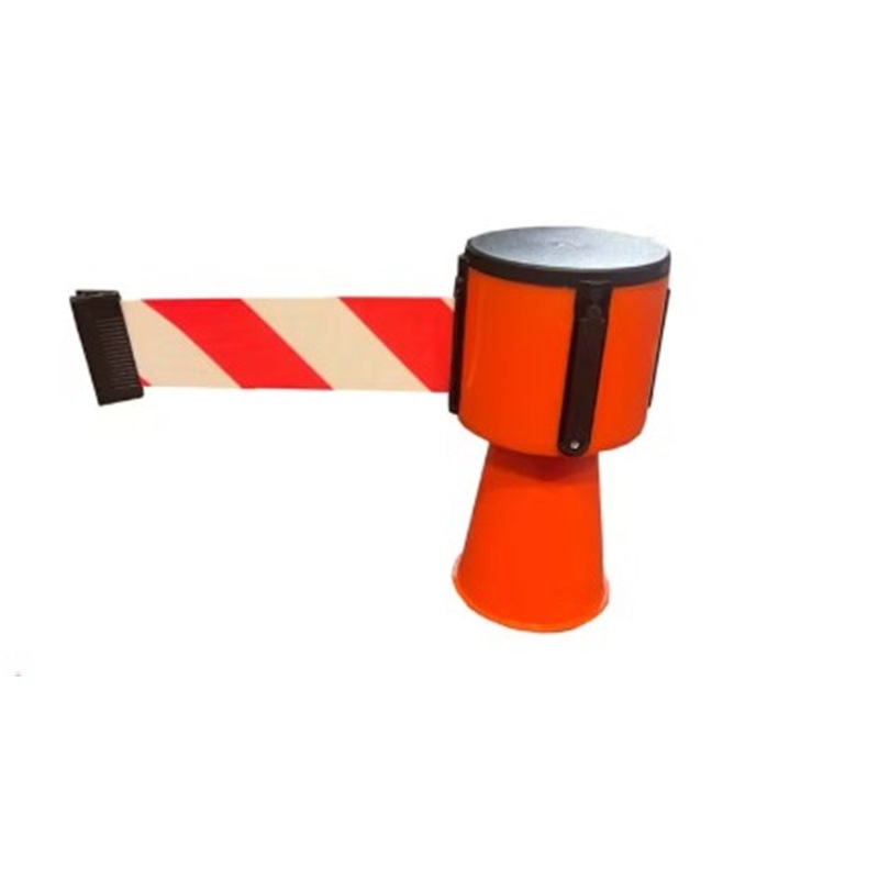 Home » Workplace Safety & Health » Traffic & Road Safety Products » TRAFFIC CONE TOPPER WITH RETRACTABLE STRIPED BARRIER BELT (5M) RED/WHITE