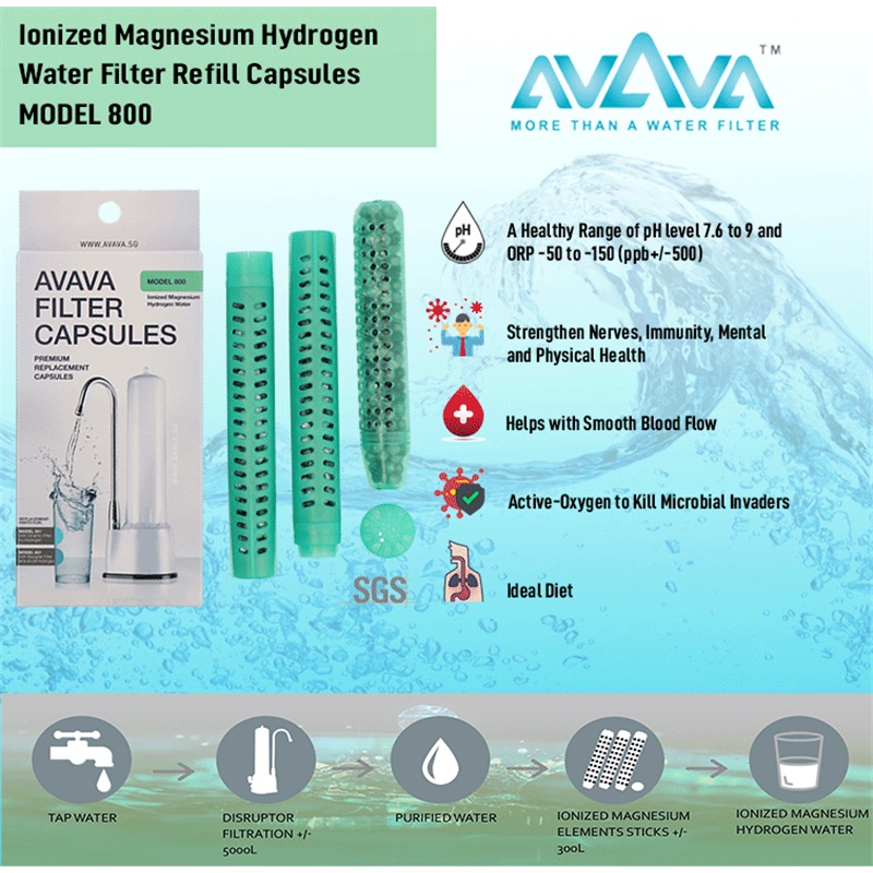 Home » Bathroom & Kitchen » Water Purifiers, Dispensers & Filters » AVAVA IONIZED MAGNESIUM HYDROGEN WATER REFILL CAPSULES 800