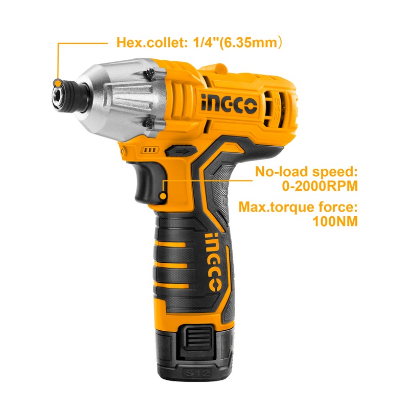 Home » Power Tools - Cordless » Cordless Drills, Impact Drivers & Wrenches » INGCO 12V 2X1.5AH LI-ION IMPACT DRIVER, CIRLI1201