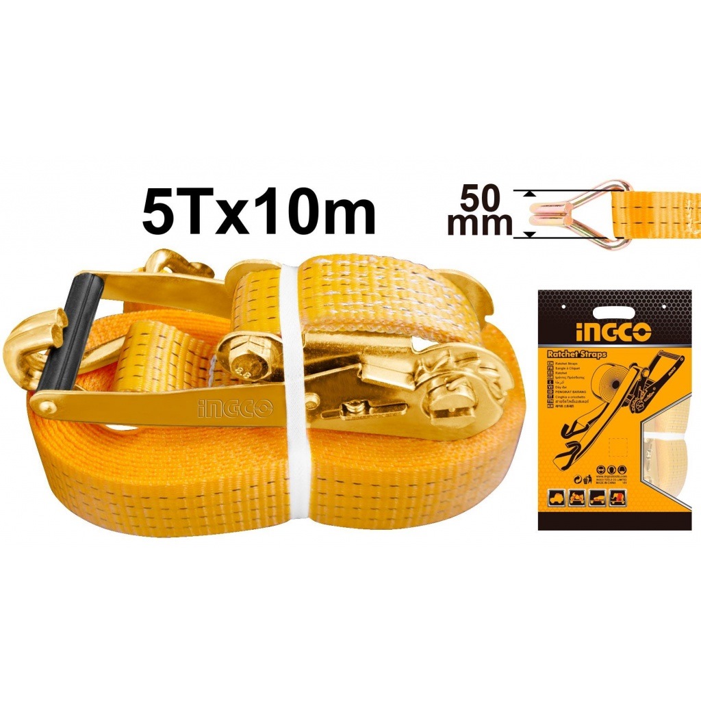 INGCO RATCHET TIE DOWN 50MM X 10M HEAVY DUTY 5 TON LOAD HRSP5101