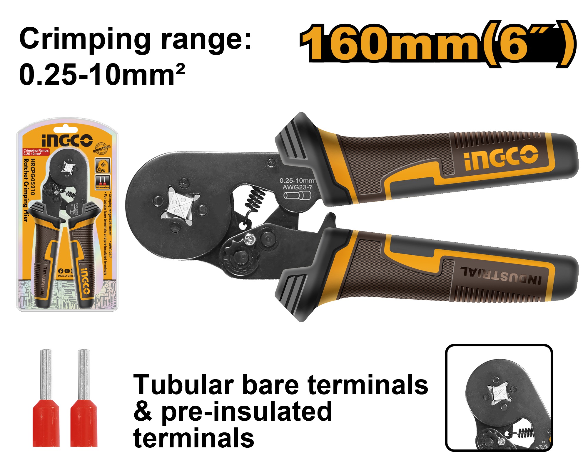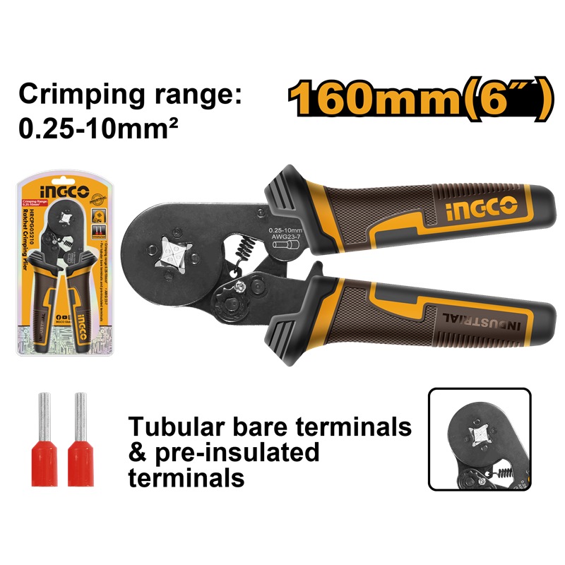INGCO TUBULAR BARE TERIMINALS CRIMPING PLIER 0.25-10MM2 HRCPG05210