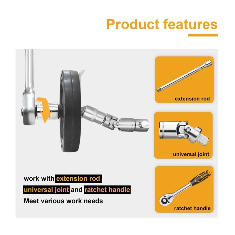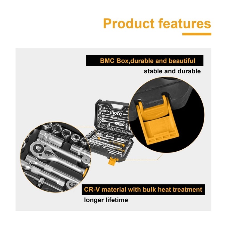 Home » Hand Tools » Hand Tool Sets & Accessory Kits » INGCO 44PCS 1/4DR+1/2DR SOCKET SET HKTS42441