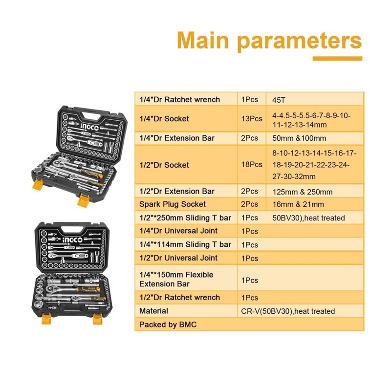 INGCO 44PCS 1/4DR+1/2DR SOCKET SET HKTS42441