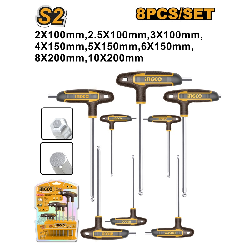 Home » Hand Tools » Hex Tools & Accessories » INGCO 8PCS T-HANDLE BALL POINT HEX KEY SET(2-10MM) HHKT80828