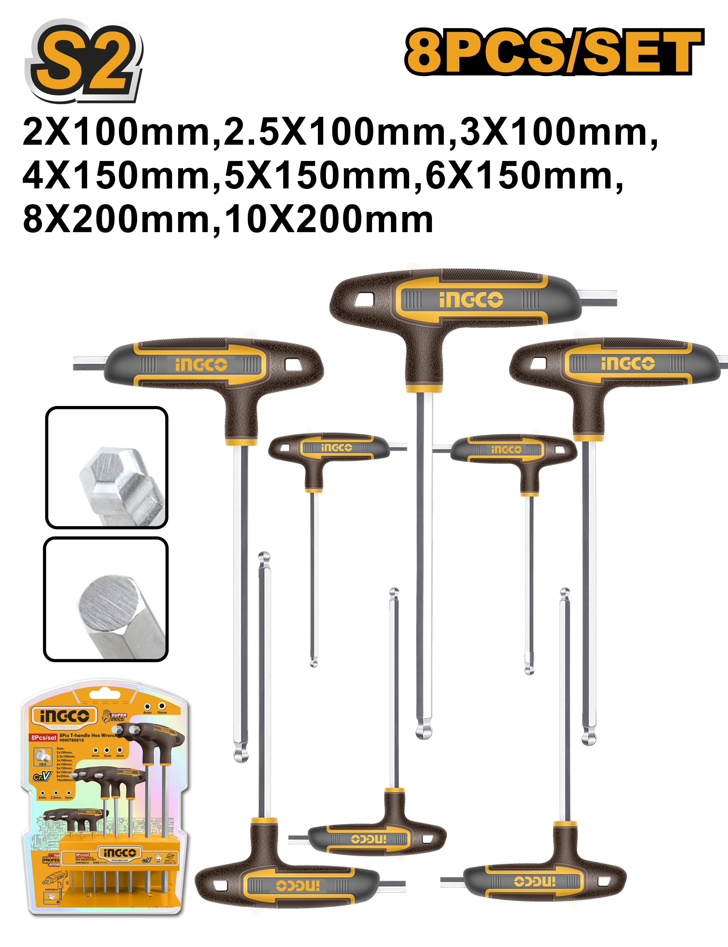 INGCO 8PCS T-HANDLE BALL POINT HEX KEY SET(2-10MM) HHKT80828