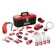 With plastic padlocks, hasps, tags, and a premier assortment of valve and electrical devices, this portable kit includes everything needed for conducting lockout. It all fits securely in a rugged toolbox to help keep devices and padlocks together. For added individual worker convenience, padlocks are supplied keyed alike.