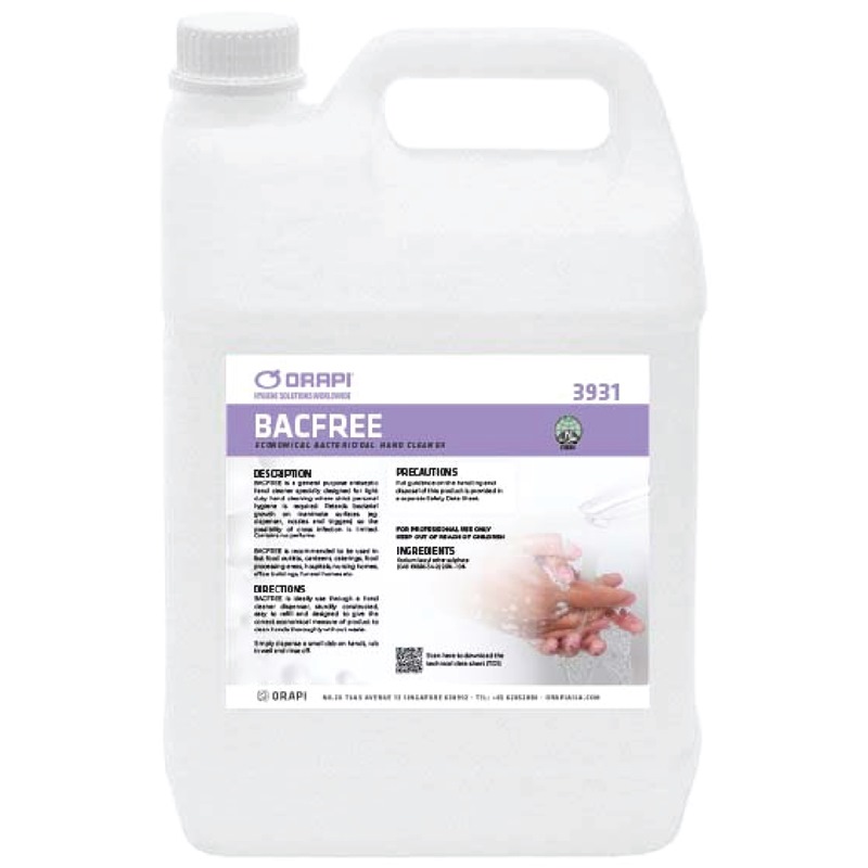 Home » Cleaning Supplies » Halal Certified Cleaning Chemicals » ORAPI BACFREE ECONOMIC ANTI-BACTERIAL HAND SOAP 5L OH-3931-J1 [HALAL]