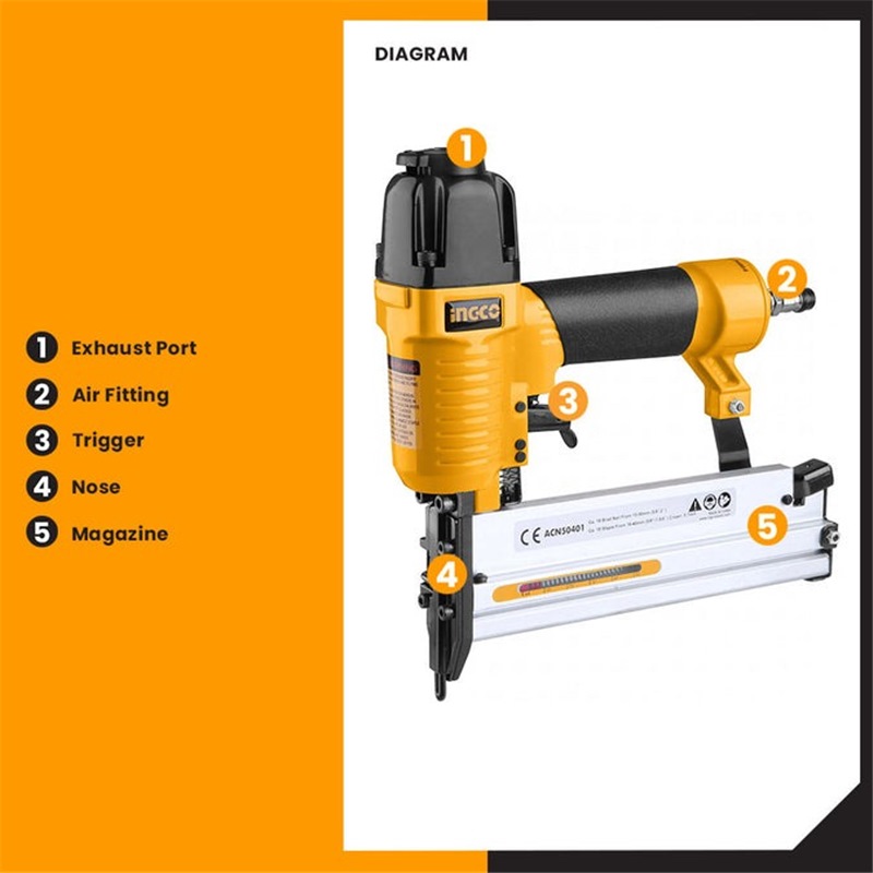Home » Pneumatic Tool & Accessories » Air Tools » INGCO 2 IN 1 AIR COMBO BRAD & CROWN NAILER ACN50401