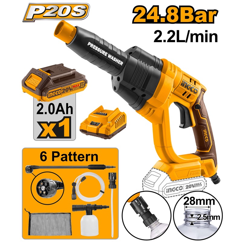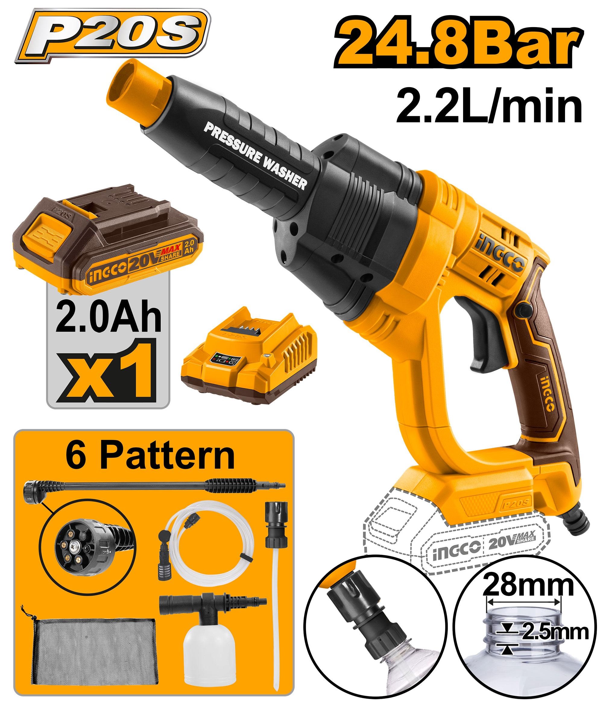 INGCO 20V 1X2.0AH LI-ION 24.8 BAR PRESSURE WASHER CPWLI20082