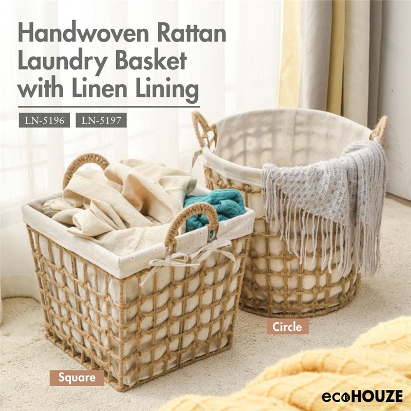 Home » Bathroom & Kitchen » Laundry Accessories » HOUZE ECOHOUZE HANDWOVEN RATTAN LAUNDRY BASKET WITH LINEN LINING LN-5197