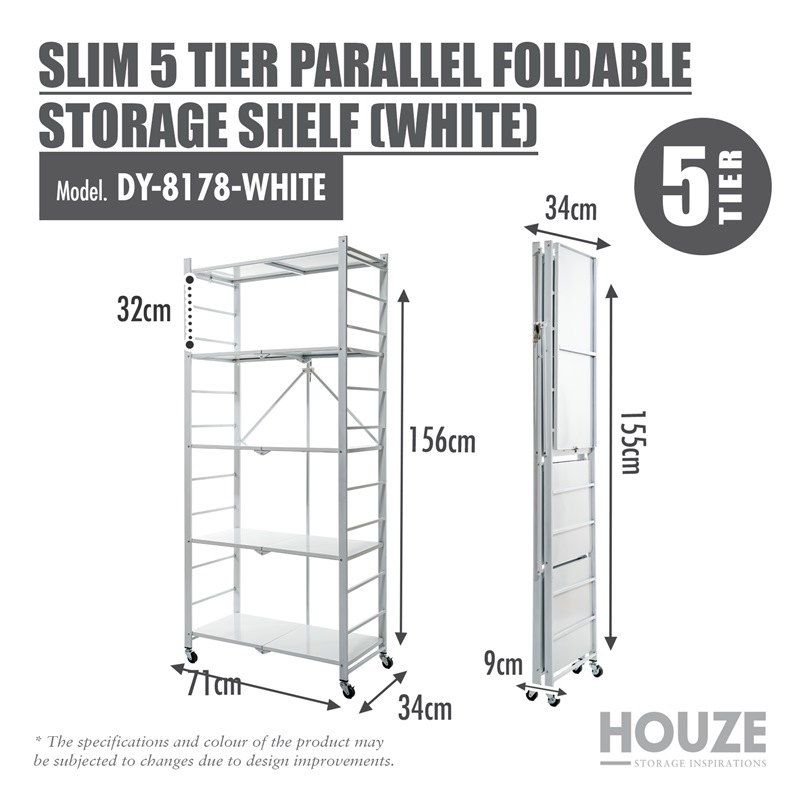 Home » Ladders, Trolleys & Storage » Shelves, Cabinets, Drawers & Racks » HOUZE SLIM 5 TIER PARALLEL FOLDABLE STORAGE SHELF DY-8178