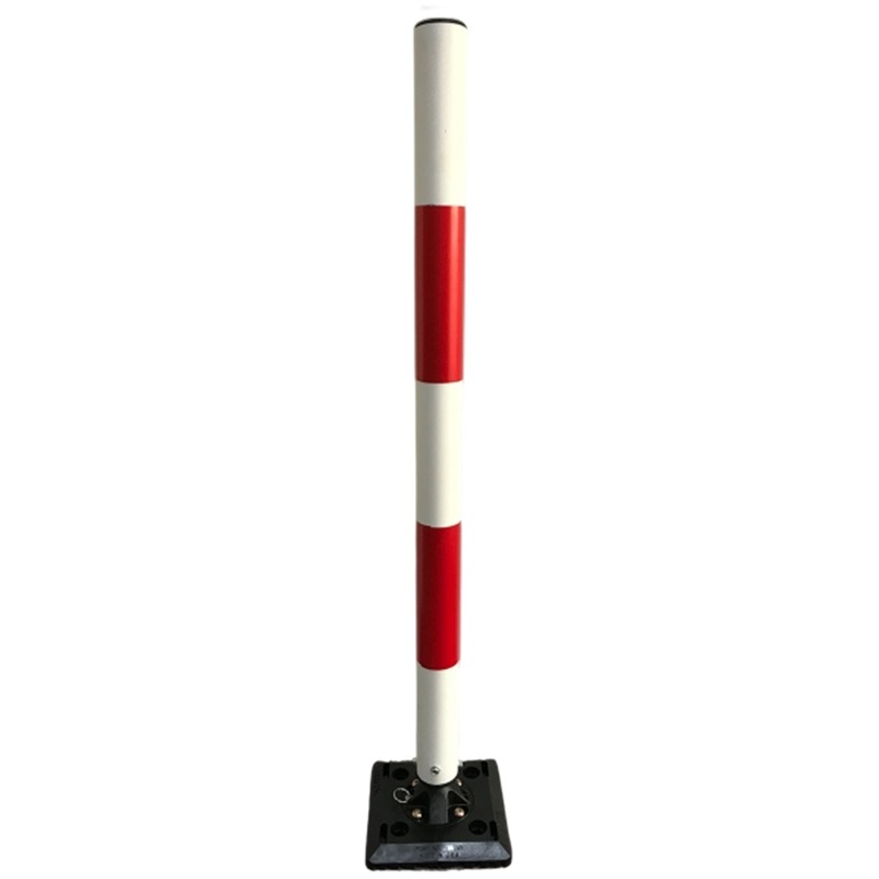 The Removable Tabular Marker Post in red and white with a black square base is designed for effective traffic control and safety marking.