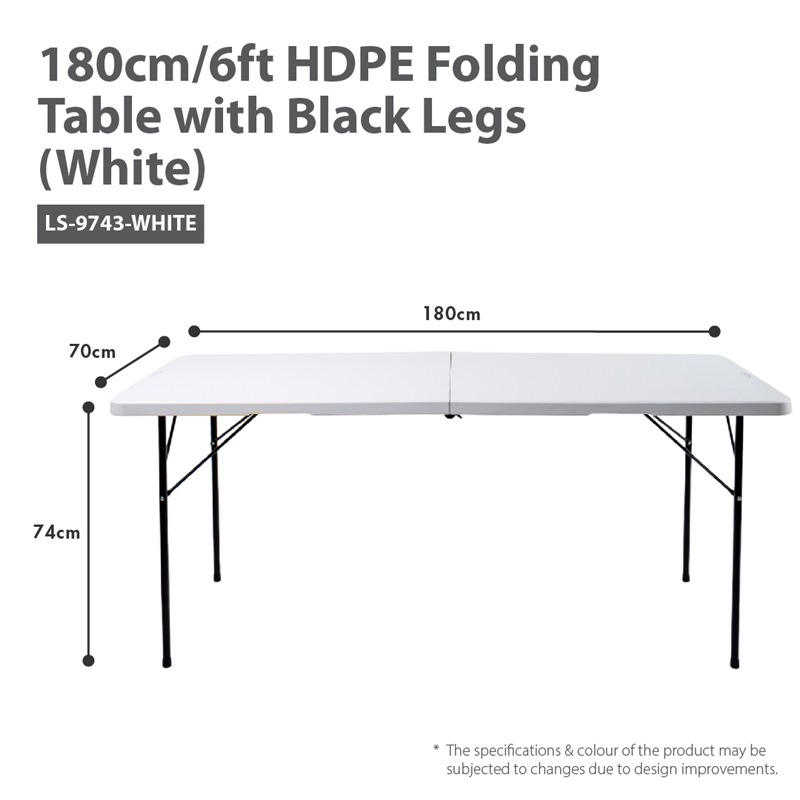 Home » Office & School Supplies » Office & Retail Furniture » HOUZE 180CM/6FT HDPE FOLDING TABLE WITH BLACK LEGS LS-9743