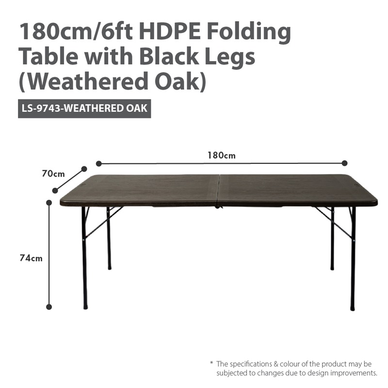 HOUZE 180CM/6FT HDPE FOLDING TABLE WITH BLACK LEGS LS-9743