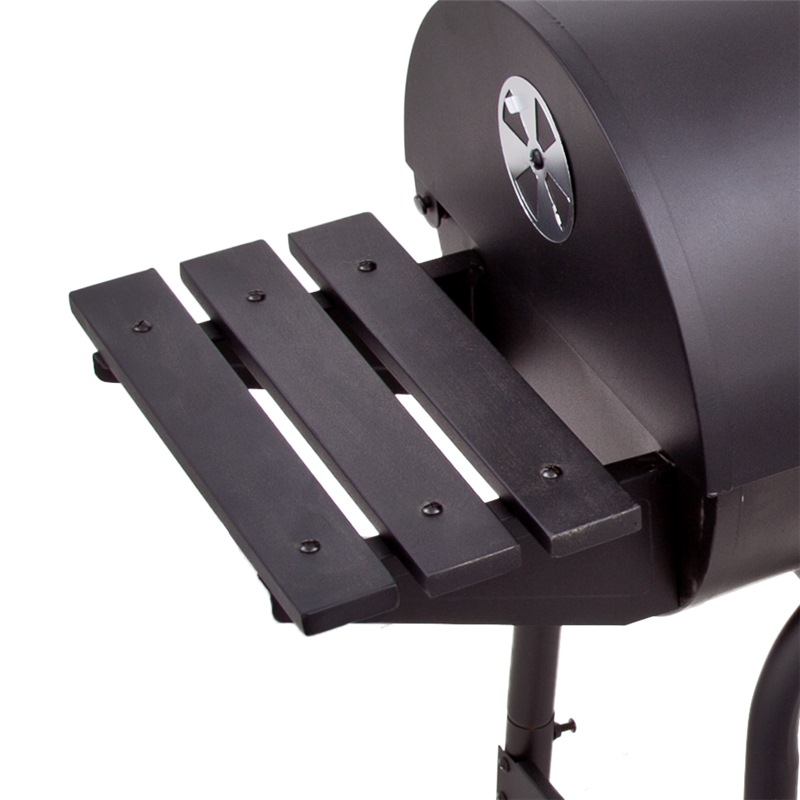 Slide out charcoal drawer allows for easy fuel access and clean-up