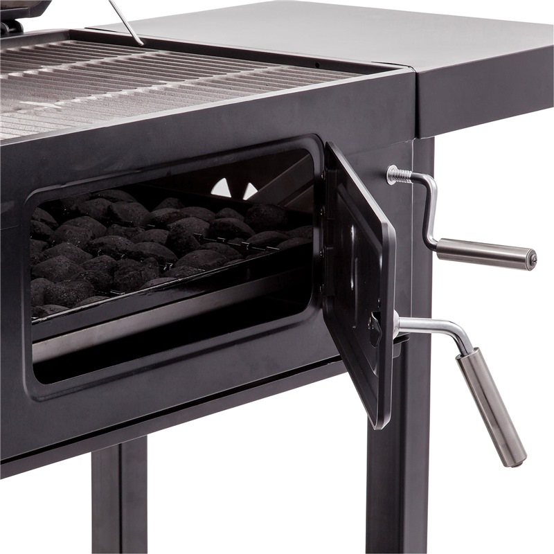 The fire pan has an external crank for individual height settings which allows for an ideal grill control.