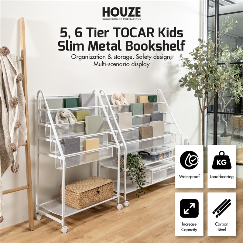 Elevate your little one's space with the TOCAR Kids 6 Tier Slim Metal Bookshelf, a bespoke storage solution crafted for the sophisticated Singaporean home. Here's what makes it a must-have: