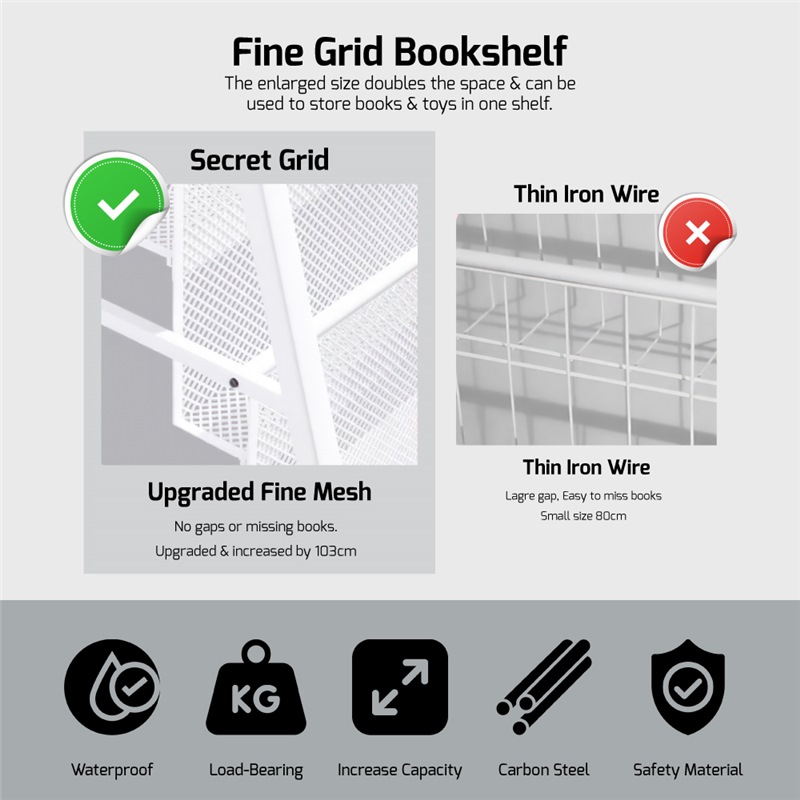 Home » Ladders, Trolleys & Storage » Shelves, Cabinets, Drawers & Racks » HOUZE TOCAR KIDS 6TIER WIDE METAL BOOKSHELF WITH REFINED GRID DY-8134-WHITE