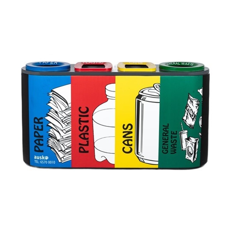 FIBREGLASS RECYCLE BIN C/W 4 COMPARTMENTS L1500XD420XH780MM BRIVO 4-IN-1 V2
