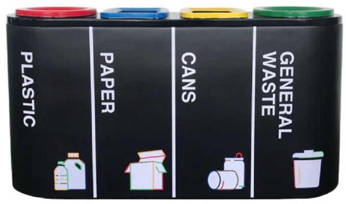 FIBREGLASS RECYCLE BIN C/W 4 COMPARTMENTS L1500XD420XH780MM BRIVO 4-IN-1 V3