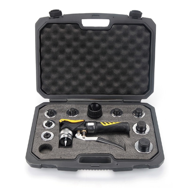 Comes with riveting expander, inside and outside de-burr, plastic carrying case packaging