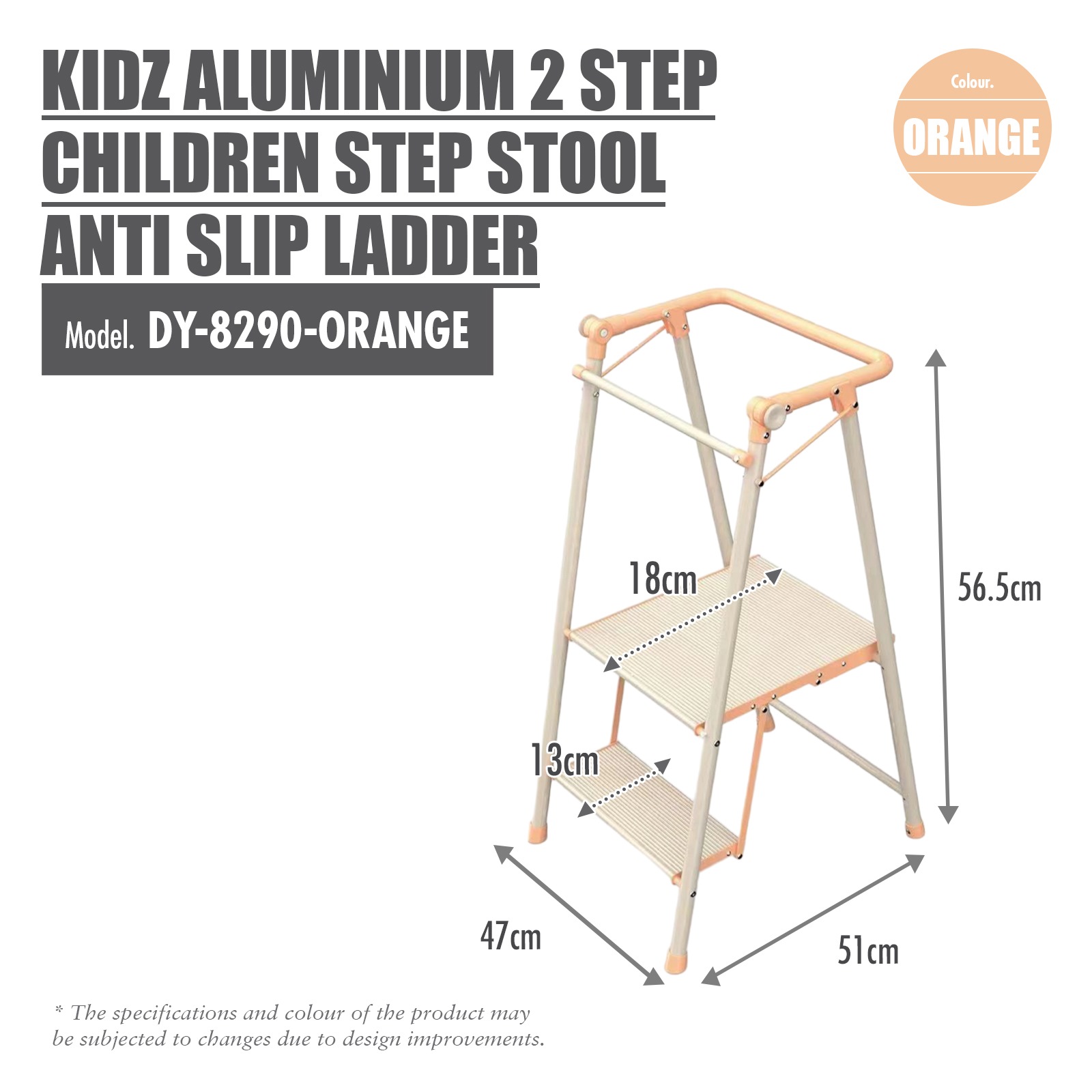 HOUZE KIDZ ALUMINIUM 2 STEP CHILDREN STEP STOOL LADDER DY-8290-ORANGE
