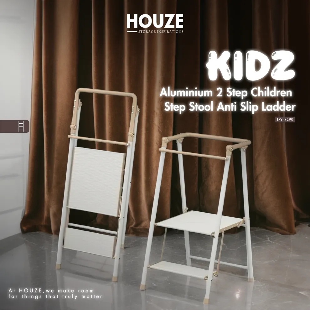 Home » Ladders, Trolleys & Storage » Ladders, Step Stools & Work Platforms » HOUZE KIDZ ALUMINIUM 2 STEP CHILDREN STEP STOOL LADDER DY-8290-ORANGE