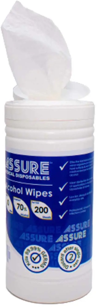 Assure Alcohol Wipes are saturated with 70% Isopropyl Alcohol, suitable for all healthcare professionals to disinfect their hospital equipment and surfaces.