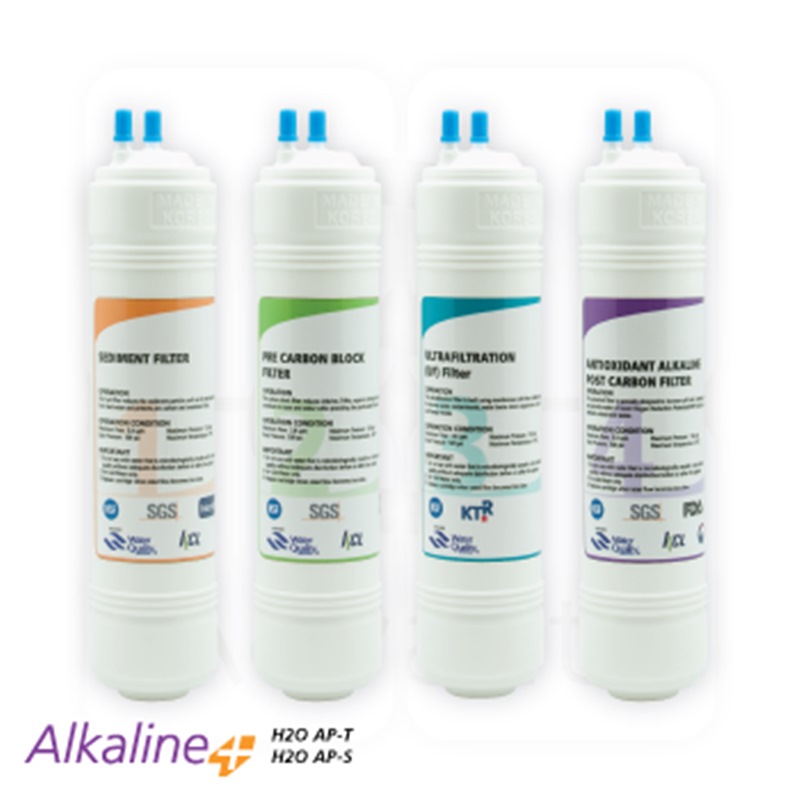 Overview This filter is designed for the reduction and removal of sediment, such as dirt, sand, and other particles that may cause cloudiness. This filter is designed for the elimination of residual chlorine and organic contaminants, to remove odours, and improve of taste. This filter is designed to prevent the propagation of germs, and eliminate odour, bad taste in your water. Eliminates water contaminants including: microorganisms and harmful organic chemicals. This patented Antioxidant Alkaline Filter (Patent 10-1748389 registered with Korean Intellectual Property Office, KIPO) is specially designed to increase pH level, hydrogen ion concentration and provide water of lower Oxygen Reduction Potential (ORP) utilizing a combination of Alkaline ORP, Max FIR and Mineral Balance balls. The granular activated carbon ensures the water tastes good with undesirable tastes and odour.