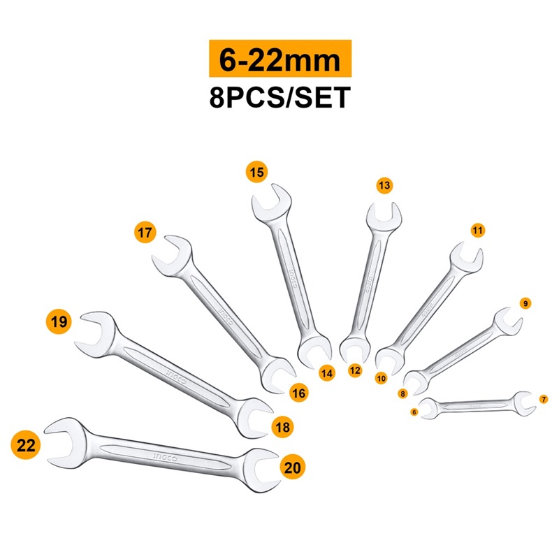 INGCO 8PCS DOUBLE OPEN END SPANNER SET 6-22MM HKSPA2088