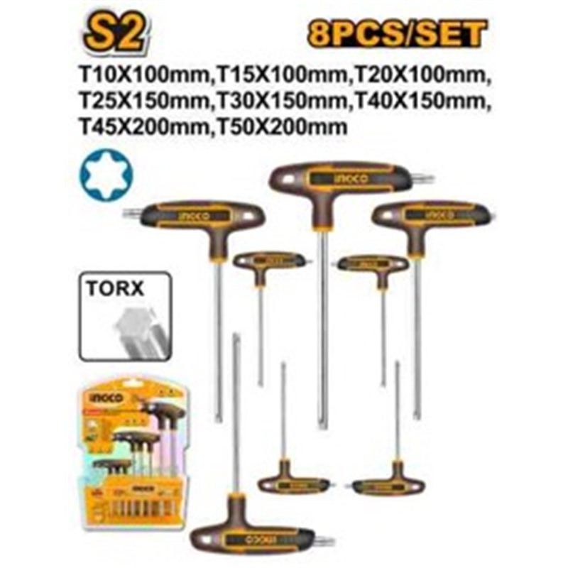 Home » Hand Tools » Hex Tools & Accessories » INGCO 8PCS T-HANDLE TORX KEY SET(T10-T50) HHKT80838
