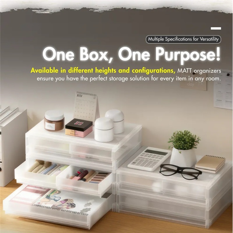 MATT's organizers can be stacked easily and securely with a bottom groove buckle, ensuring stable storage while saving space.