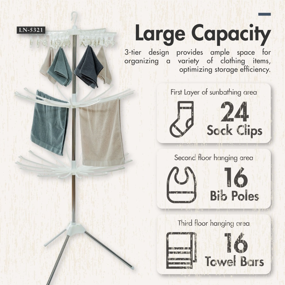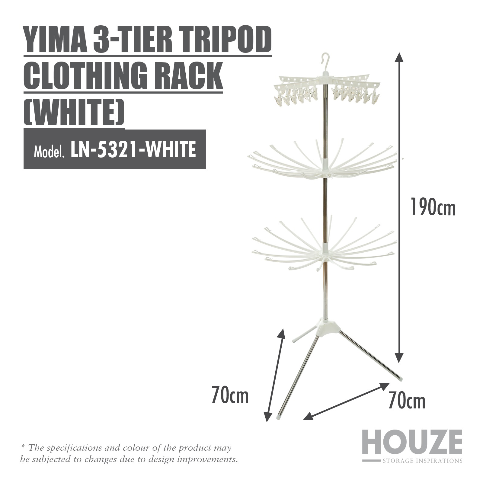 Home » Bathroom & Kitchen » Laundry Accessories » HOUZE YIMA 3-TIER TRIPOD CLOTHING RACK (WHITE) LN-5321-WHITE