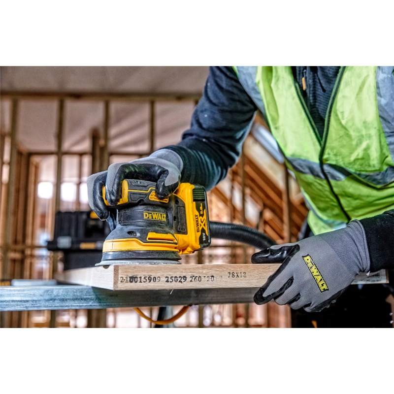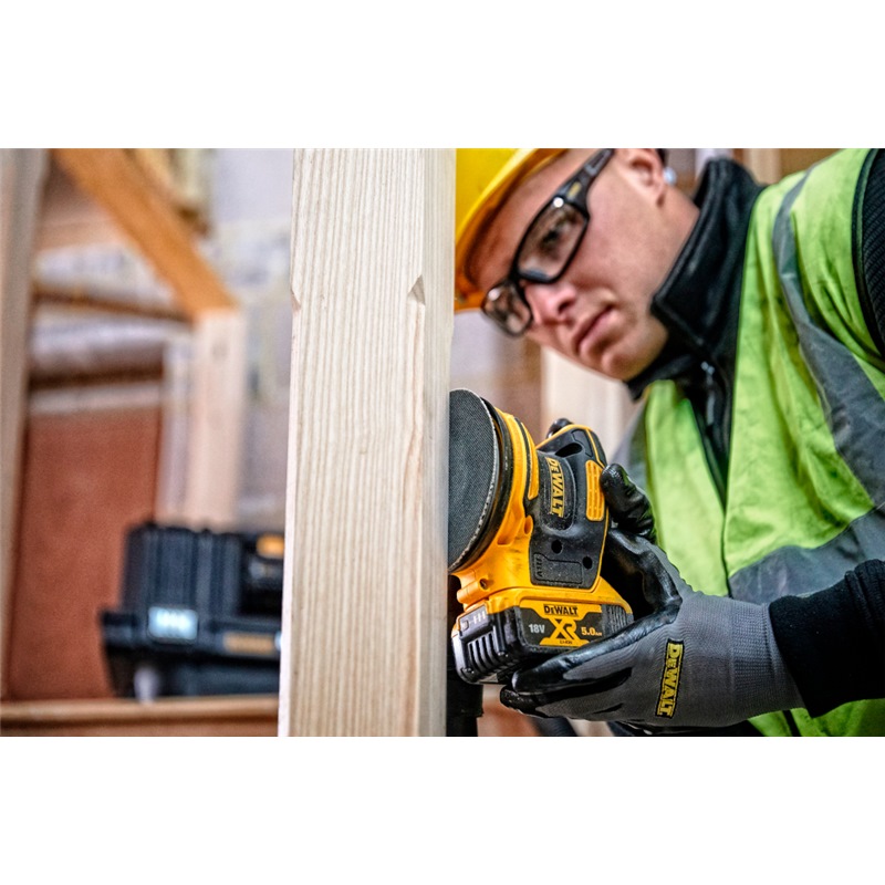 Powered by the DEWALT 18V XR battery, the sander features a 2.6mm orbit, a 125mm base, and is capable of a maximum speed of 12,000opm.