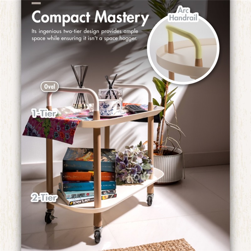 HOUZE 2 TIER WHEELED OVAL TABLE TROLLEY (WHITE) LS-9232-WHITE