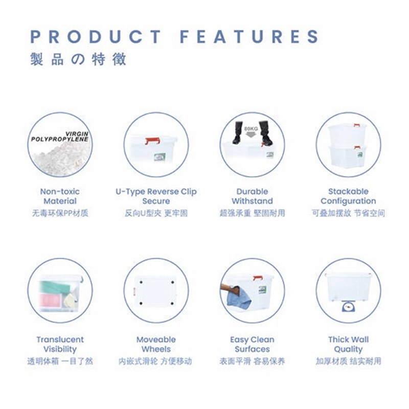 TOYOGO STORAGE BOX WITH WHEEL 9509 (90L) L68XW50XH39CM