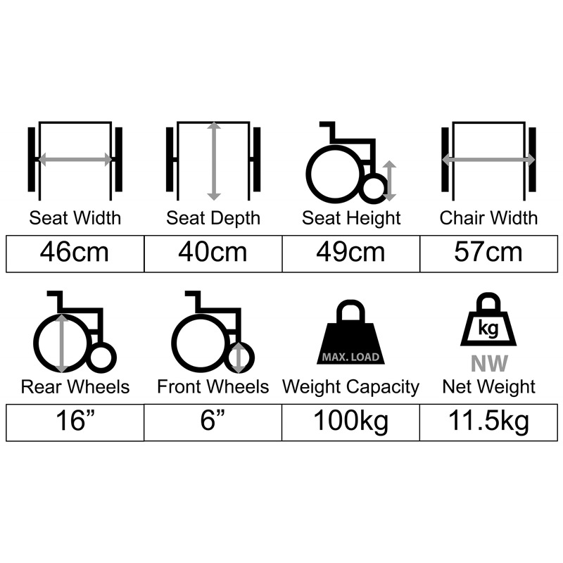 ASSURE REHAB 18” LIGHTWEIGHT PUSHCHAIR WITH FLIP-UP FOOTREST AR-0151