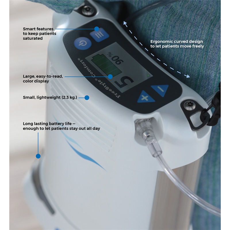 The FreeStyle Comfort is incredibly simple and easy to use with just three buttons to power on/off the machine and adjust the flow to the desired setting - The only buttons an oxygen user is ever likely to need on a portable oxygen concentrator.