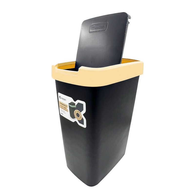 Keden Compact Waste Bin is a rectangular waste bin with smooth interior and practical open lid.