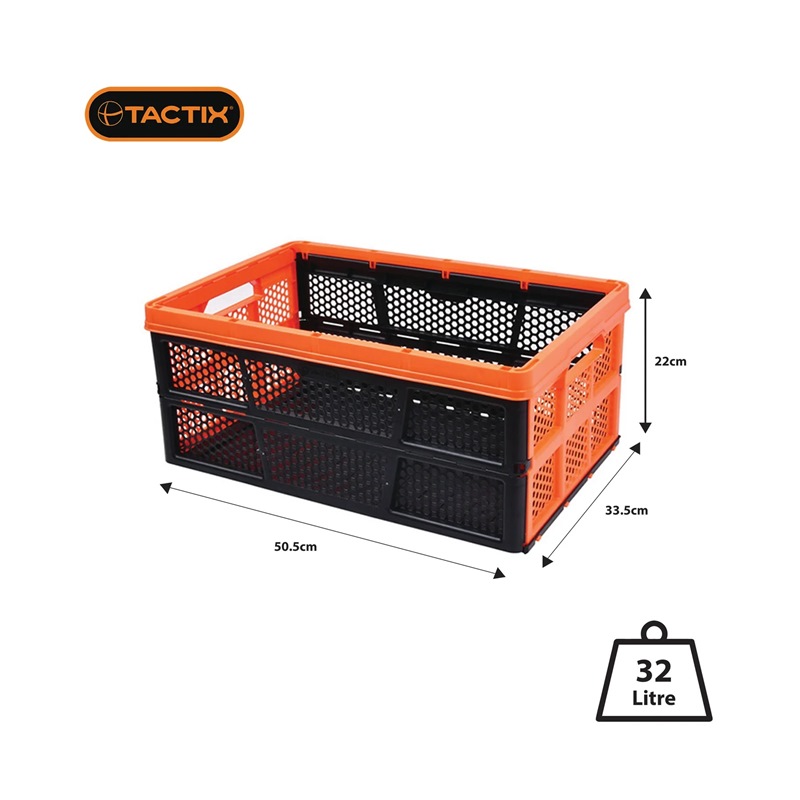 Home » Ladders, Trolleys & Storage » Storage Boxes & Plastic Containers » TACTIX KNOCK-DOWN STORAGE CRATE 32L TX-320232